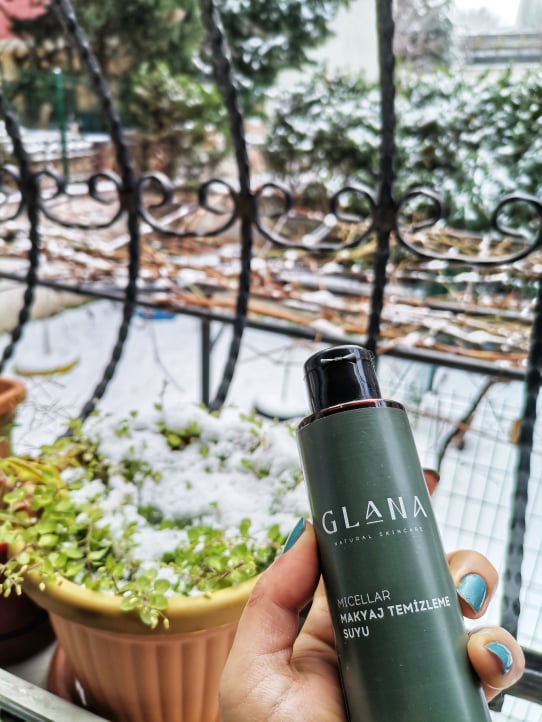 Glana Cosmetics Natural Skincare Makyaj Temizleme Suyu; suya ve uzun süre dayanıklı makyaja, fazla yağa ve kirlere, cildin doğal nemini kaybetmeden temizlenmesini sağlayan bir yüz temizleyici. Uygularken pamuğa döküp cildimi temizliyorum. Sonrasında durulama yapmıyorum. Cildime uygularken nazik bir şekilde temizlemesini ve makyajımı rahatça çıkarmasını beğendim. İçeriğinde aloe vera, gül yağı ve skualan yağı bulunuyor. Aloe veranın cildi koruyucu ve iyileştirici etkileri mevcut. Gül yağının nemlendirici özellikli, cildi arındırıcı, tonlandırıcı, yorgunluk giderici özellikleri bulunuyor. Skualan yağı yaşlanma karşıtı özelliklere sahip, cildi temiz ve sağlıklı tutmaya faydalı bir yağ.